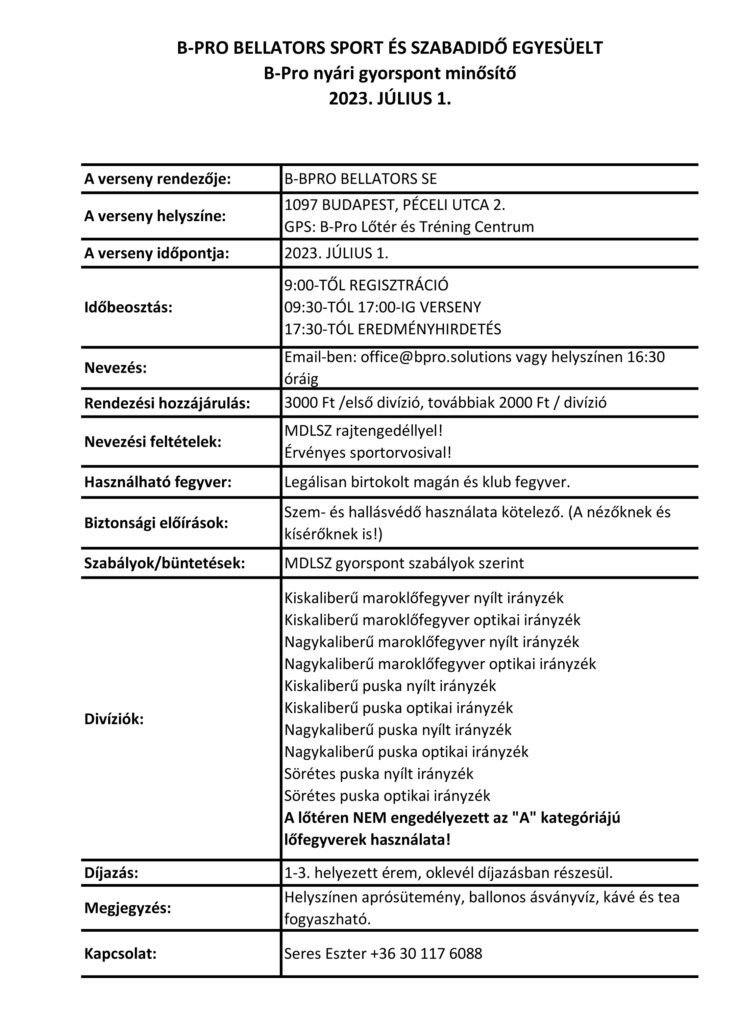 2023. Július 1-én BPRO Nyári gyorspont minősítő versenyt tartunk.
