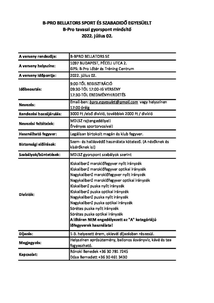2022. július 02-án B-Pro Nyári Gyorspont Minősítő!